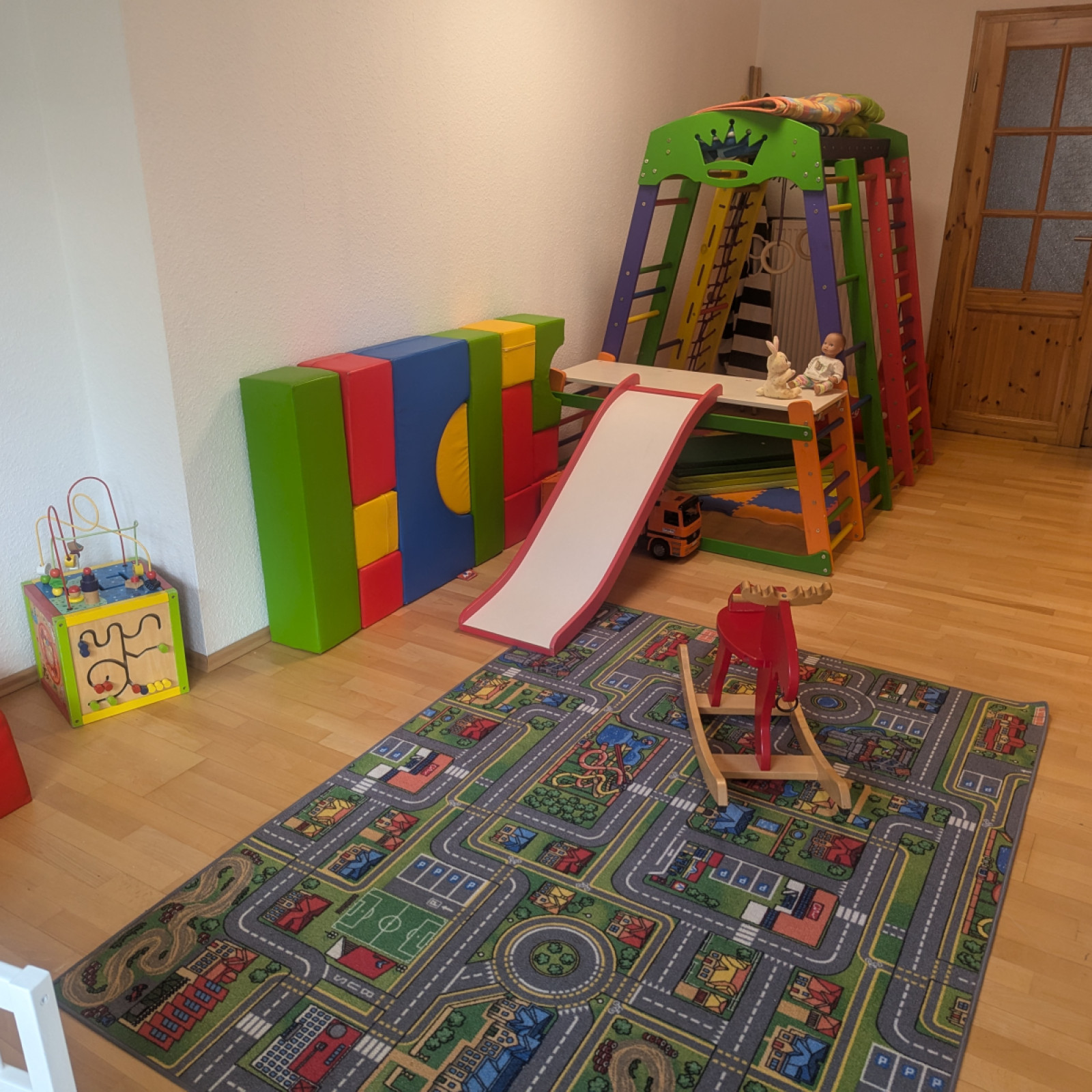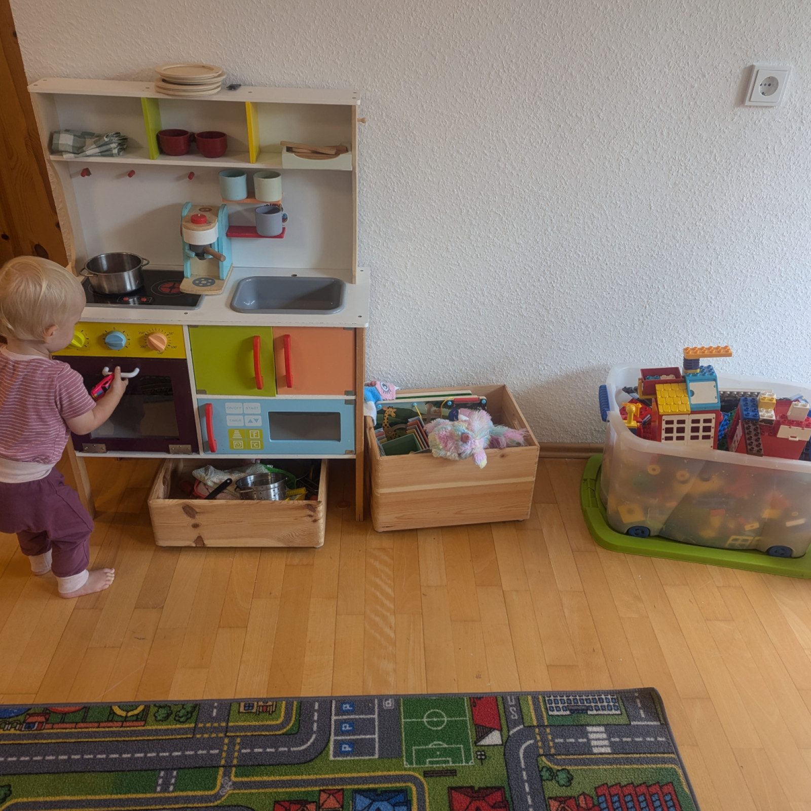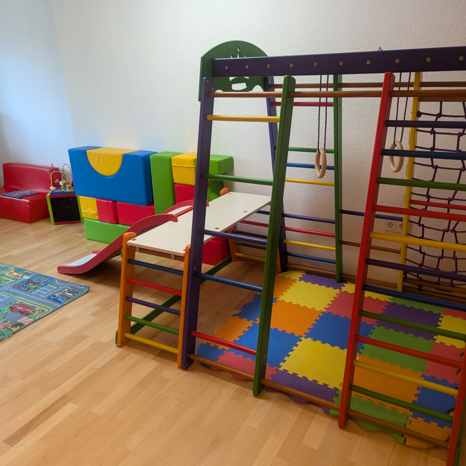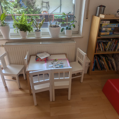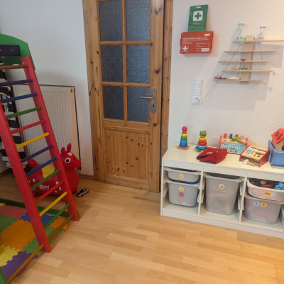 Die Räume meiner Kindertagespflege bieten den Kindern Platz zum Toben, Spielen und Schlafen. In unserem Haus sind separate Räume für die Kindertagespflege eingerichtet. Die gesamte untere Etage kann von den Kindern benutzt werden, dazu zählen Küche und Esszimmer sowie ein Badezimmer mit Wickelmöglichkeit, kindgerechter Toilette und Waschbecken und für ganz große Unfälle Dusche. Die Einrichtung ist modern und mit der kindgerechten Ausstattung fühlen wir uns hier jeden Tag wohl. Sicherheit ist beim Spielen wichtig und so sind die Räume mit verschiedenen Features ausgestattet, die unbekümmertes Spielen ermöglichen. Für den Mittagsschlaf oder um sich auszuruhen gibt es ein eigenes Bett für jedes Kind. In den Räumen gibt es verschiedene Bereiche zum Basteln oder Spielen – mache Bereiche werden auch für verschiedene Anlässe umgeräumt. In den Räumen wird natürlich nicht geraucht und es gibt keine Tiere.